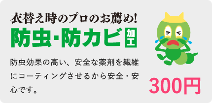 お子様がいらっしゃる方や、アレルギーをお持ちの方におすすめの加工です。洗ってキレイになったふとんやカーペットに、再びダニが付くのを防ぎます!